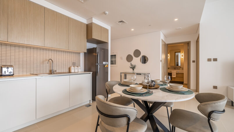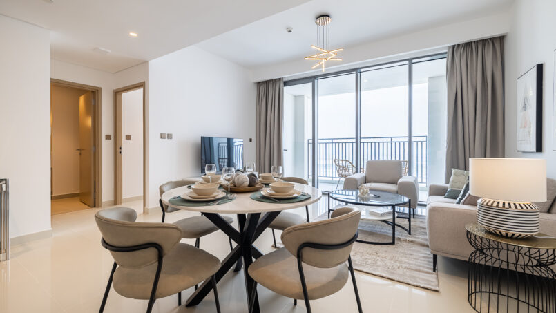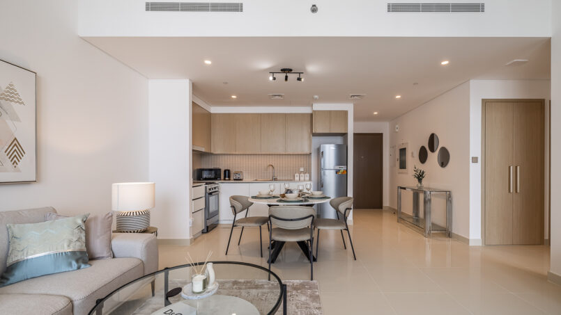 Spacious multi-functional 1-bedroom apartment located in Creek Harbour , 17 Icon Bay Tower – this apartment will amaze you with its beauty and comfort as the design is modern. The property layout consists of sofa, dining area & well fitted kitchen.
