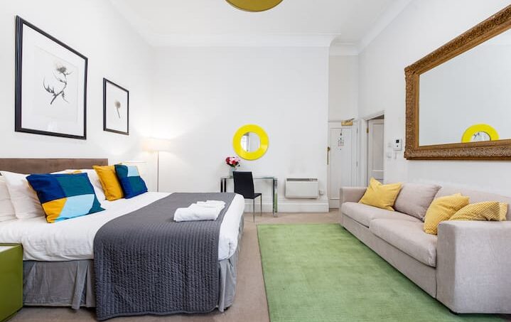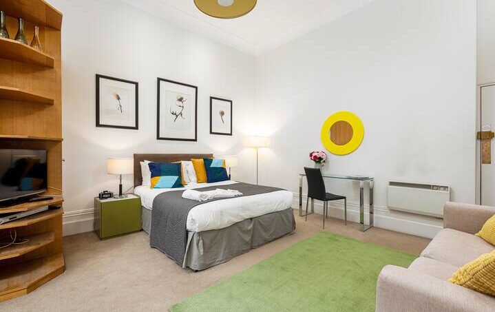 This luxury serviced apartment is located just 5 minutes’ walk from the prestigious Sloane Square. Surrounded by boutique shops and restaurants, it offers elegant décor and a fully equipped kitchen.
