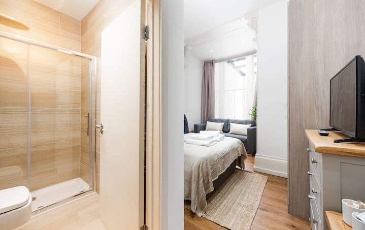 Located a short distance from Bayswater and Queensway tube stations, this hotel style room is located on a quiet residential road. The room has a private bathroom, and open plan living space as well as complimentary Wi-Fi. The property has a laundry room on the first floor for guests use. Location: Ground Floor