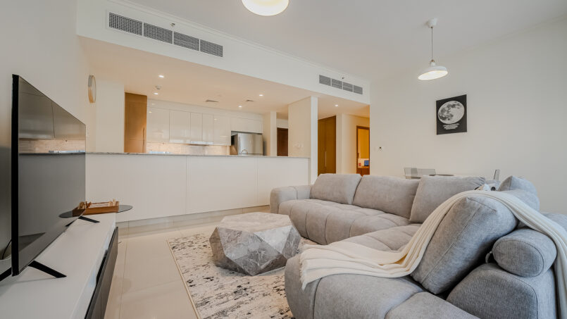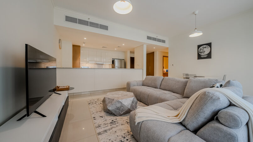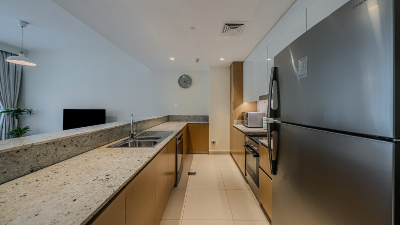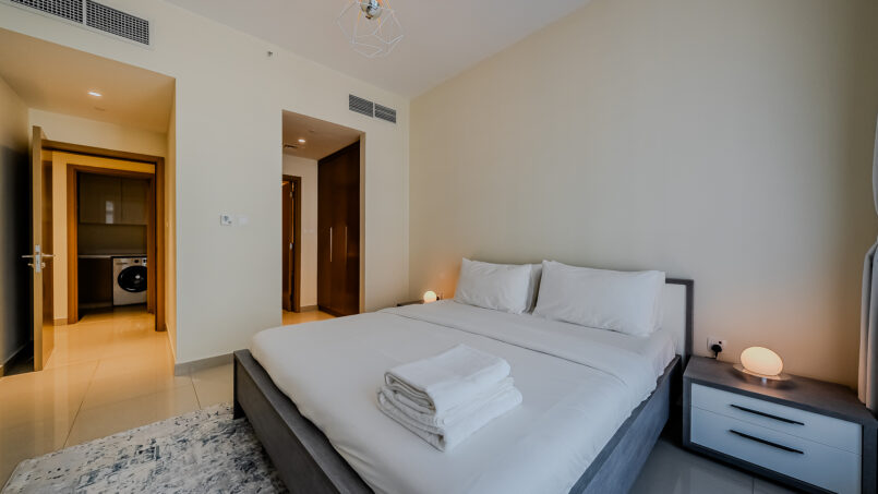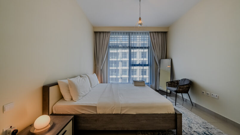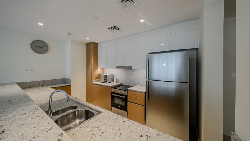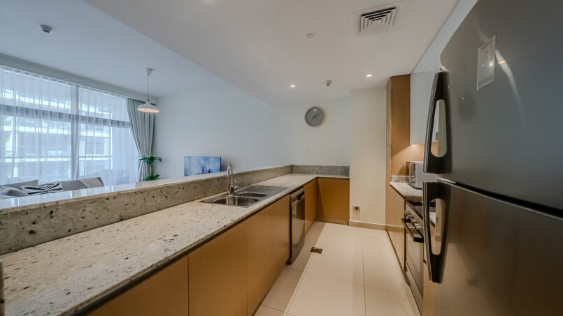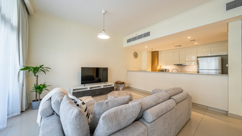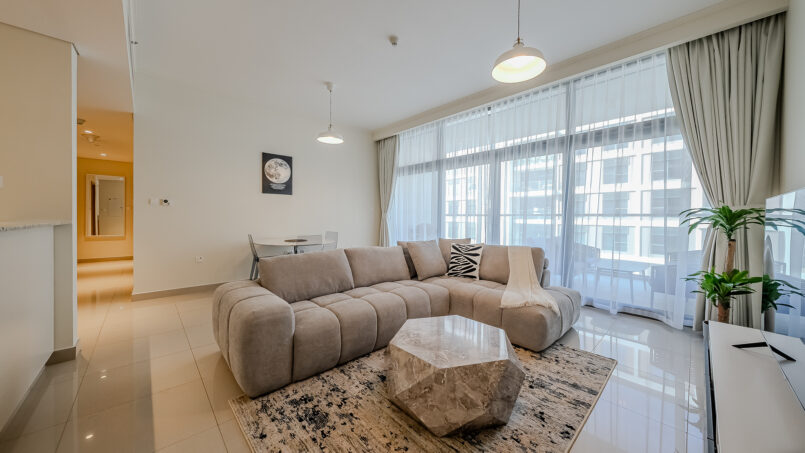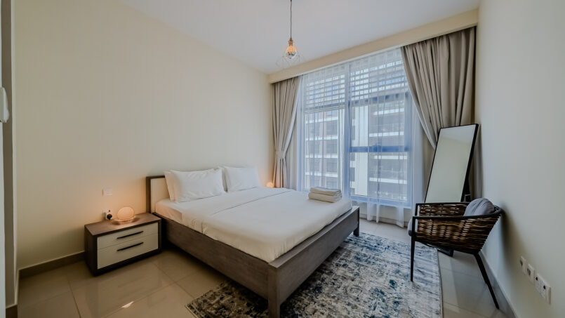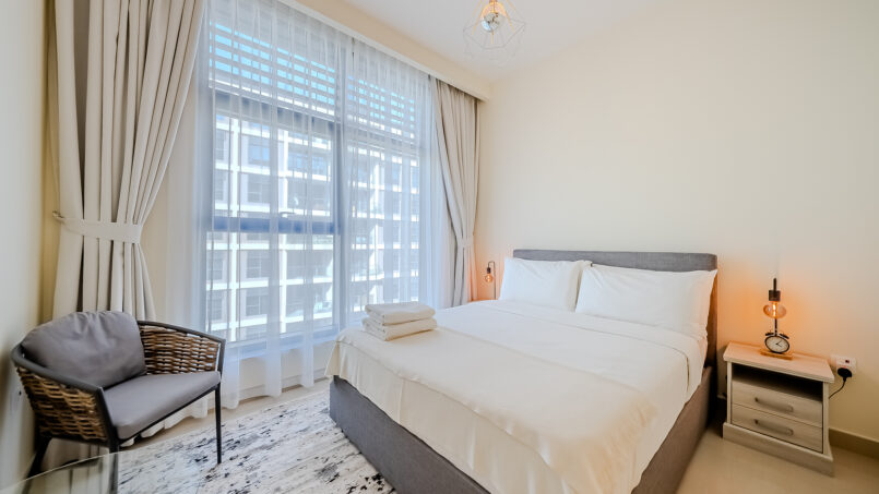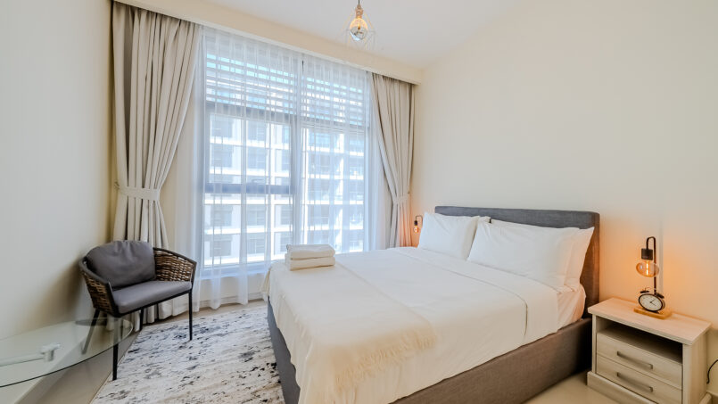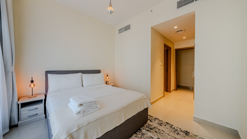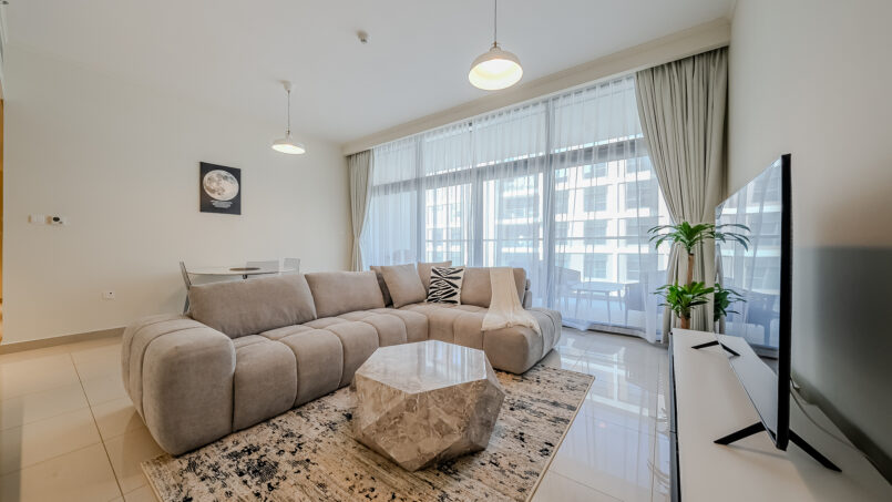 Spacious and stylish 2-bedroom apartment located in Dubai Hills. This apartment will stun you with its elegance and beauty as the living room & the bedrooms are thoughtfully designed with high quality furniture and bed settings. The apartment reflects a tone of modernity and comfort. The bathrooms are filled with toiletries. The kitchen is fully equipped with all the appliances, refrigerator, microwave, oven, washing machine, dishes/cutlery, kitchen utensils, toaster, kettle, vacuum etc.