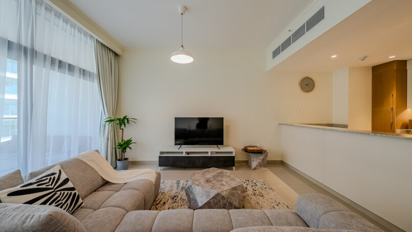 The living room is well put together with a modern outlook, with a large sofa, smart Tv and dining area overseeing beautiful views of the city. The home is always professionally cleaned and strategically sanitized for your safety. The apartment is very cozy, spacious, and ready to move in