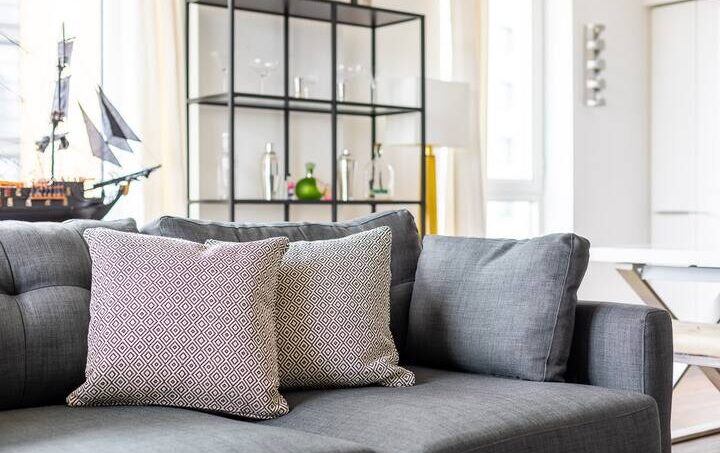 The living room is equipped with a sofa and a dining table that can seat 6 people. The kitchen is fully fitted with modern appliances. The master bedroom comes complete with a super king-size bed, while the other rooms have a double bed and a sofa double bed. The apartment also features two bathrooms, respectively equipped with a standing shower.