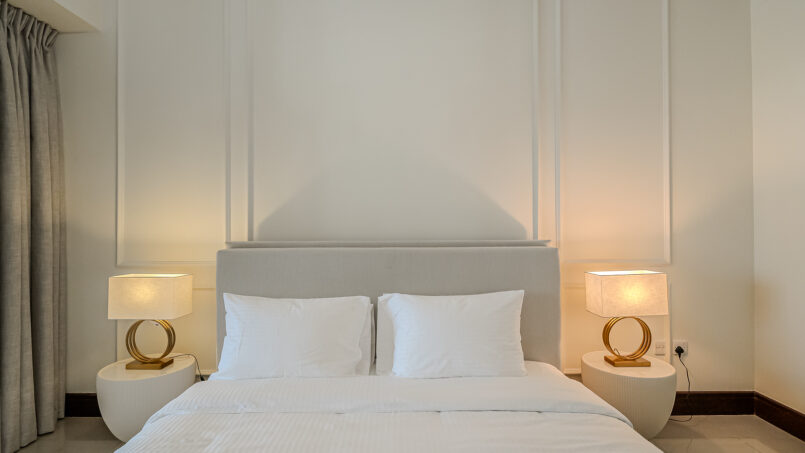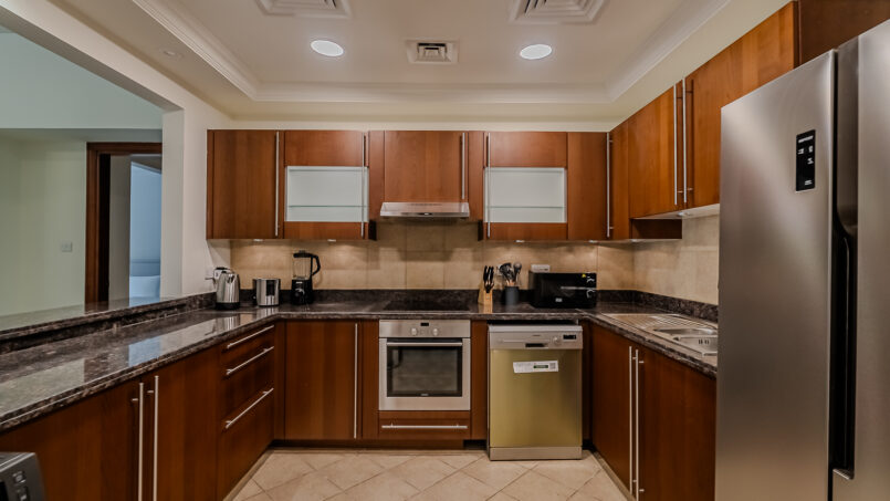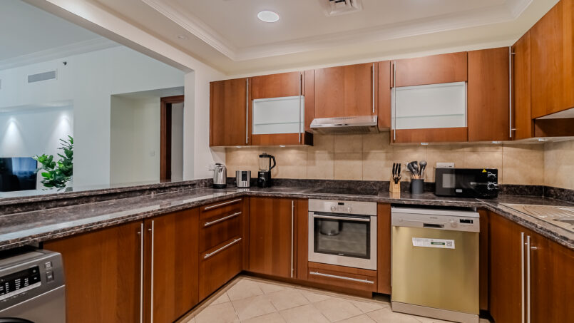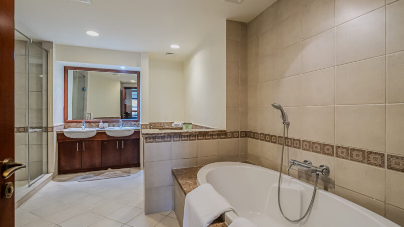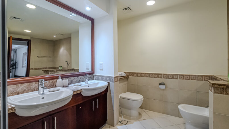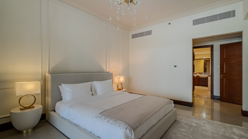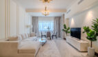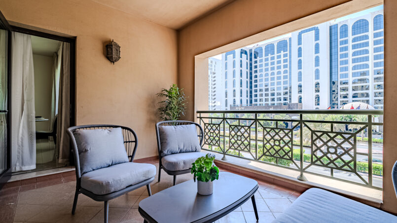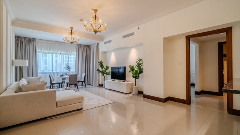 A newly furnished 1-bedroom apartment with balcony located on The Palm – Golden Mile – perfect for those who want to enjoy the serenity of beach life, the apartment’s design is light and airy that leans into a natural and aesthetic look. This brand new 1-bedroom apartment features high-end luxury furniture and a modern design. The layout is spacious and embraces warm undertones that creates a vibrant atmosphere. The tastefully designed living room is styled with a large sofa, smart TV and dining area, creating a simple and fresh look. The rooms are spacious and thoughtfully styled with a minimalistic and trendy touch, the beds are well set with fresh linens and high-quality matrasses. The property features a fully equipped kitchen with all appliances, modern bathrooms filled with toiletries and storage facilities. The apartment is very cozy, spacious, and ready to move in, with all the appliances to ensure a smooth and perfect stay.