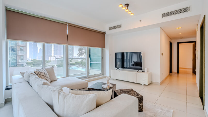 Newly Furnished 2-bedroom apartment that has everything you need for an amazing stay. The mesmerizing views from the balcony & the unrivaled layout of the property makes you indulge in the epitome of sophistication. The bedrooms are well designed with modern interiors and plenty of natural light coming through spacious windows which given the un-obstructed view outside.