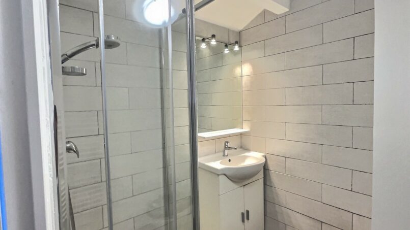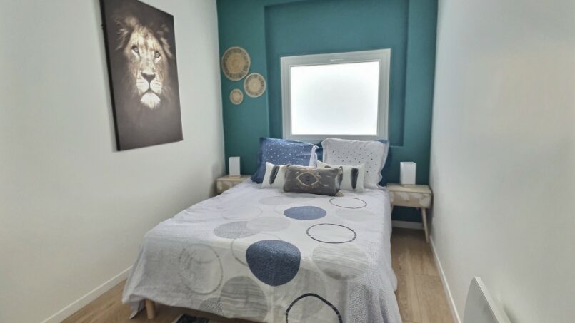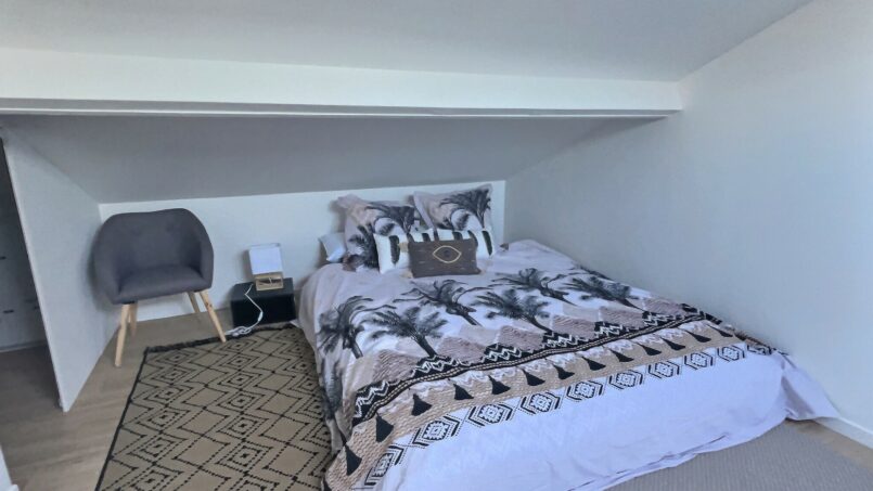 Upstairs a 20m2 master bedroom with its own bathroom, equipped with a TV and storage space