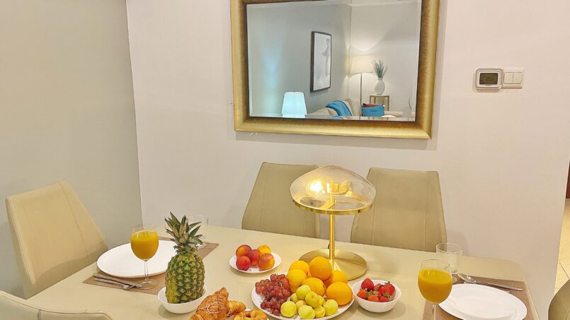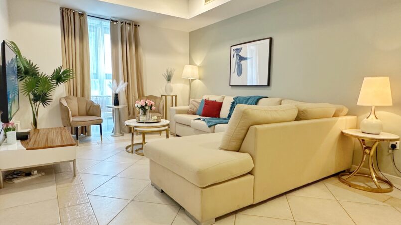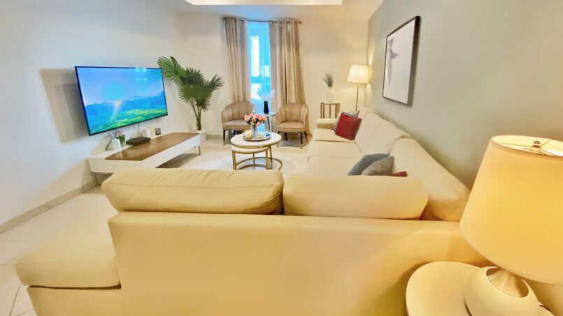Welcome to your Dubai Skyline Retreat. Soaring high above the cityscape, this modern apartment offers a perfect fusion of sophisticated comfort and spectacular city and palm views.