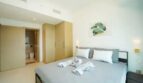 The two bedrooms are tastefully decorated to provide a retreat-like atmosphere. The master bedroom boasts a regal king-sized bed, while the second bedroom features a comfortable queen-sized bed. For added flexibility, the living room is equipped with a sofa bed, ensuring ample sleeping arrangements for guests or family members.