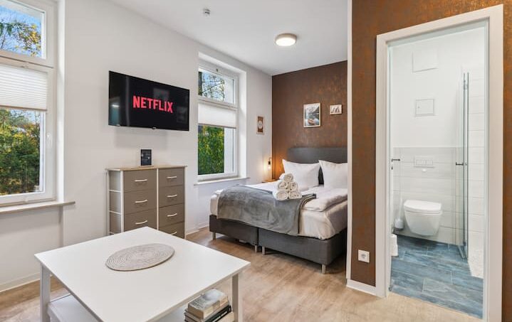 Experience comfort and convenience in our modern apartment in Eichwalde. Whether you’re on a business trip, traveling with your partner, or part of a small group, our apartment provides everything you need for an unforgettable stay. We look forward to your booking and are available for further information.