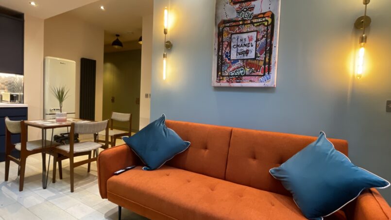 Our 35sqm apartment is a private haven designed with your comfort in mind. The bedroom features a sumptuously comfortable king-size mattress, while a fold-out sofa bed offers a cozy option for additional guests.
