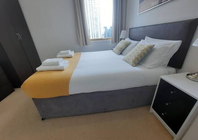 This is a wonderful 14th floor apartment which is a great place to base yourself in during your stay in London. The building is 5 minutes walk from Canary Wharf tube station and 3 minutes from South Quay DLR. The kitchen is fully fitted, has washer dryer, fridge freezer, dishwasher, toaster, kettle, microwave.