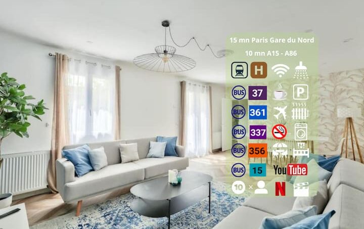 15mn Paris, Parking Privé Gratuit, Terrasse,Jardin