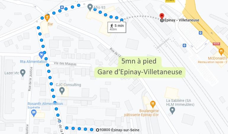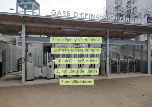 Gare d’Épinay – Villetaneuse ligne H (10 mn – Paris ) à 6mn à pied