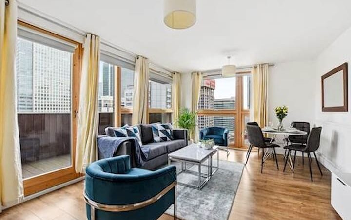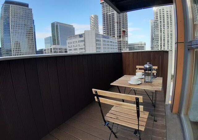 A newly refurbished 15th floor apartment with stunning city skyline views across Canary Wharf.