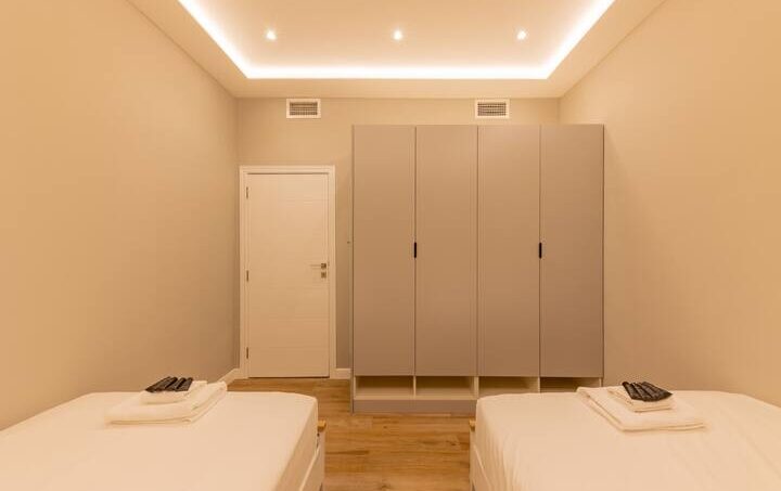 The apartment fits 4 people comfortably with a king sized bed in the main bedroom and 2 single beds in the second room.