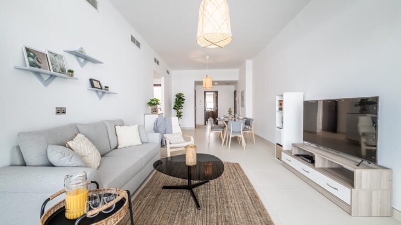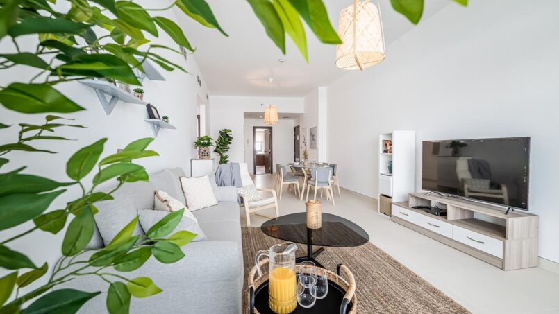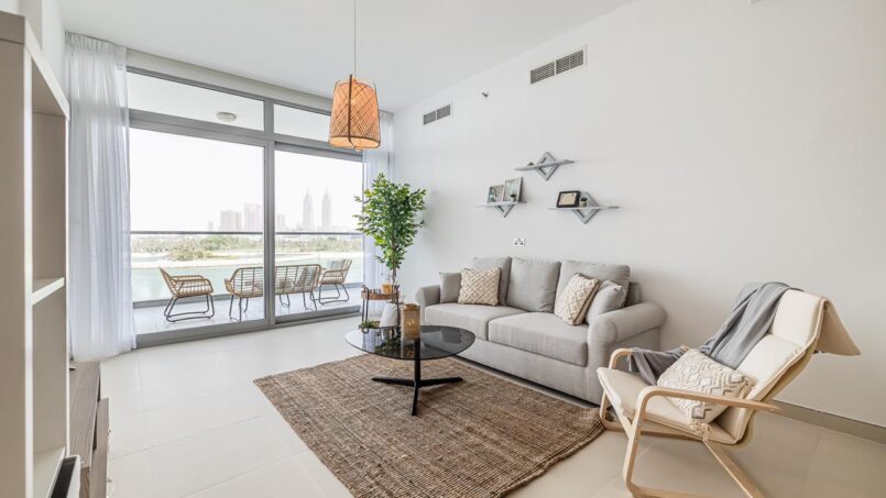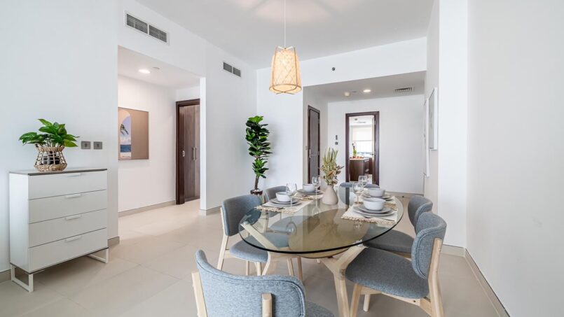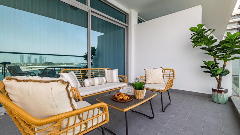 Luxurious two-bedroom apartment located in Palm Jumeirah with a view of the ocean. The home layout design, which generates a light and airy ambiance, which is inspired by a beach lifestyle motif. It features a sea view in addition to views of Dubai Marina and the Burj Al Arab from the city skyline.