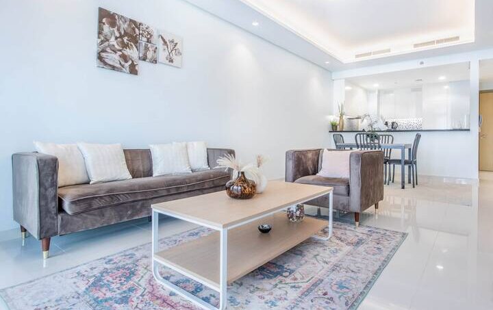 Experience luxury living at Paramount Midtown Residence in Dubai at 34th Floor. This stunning 2-bedroom, 2.5-bathroom apartment offers breathtaking views of Burj Khalifa. The living space seamlessly connects with an open-concept kitchen and dining area. Both bedrooms have plush beds and en-suite bathrooms. Relax on the expansive balcony with city skyline views. Enjoy amenities like a gym, infinity pool, sauna, spa, and on-site restaurant. Book now for an unforgettable stay with Dash Stays.
