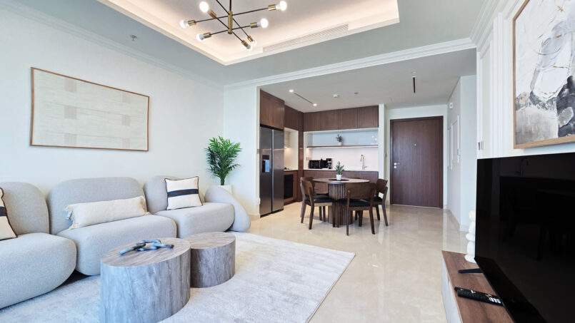 Settle into a breezy 2-bedroom retreat just seconds from the shoreline. Both bedrooms offer comfy double beds, while the open-plan living area flows to a balcony made for sunset hangs. Cook up fresh meals in the fully equipped kitchen, stream your shows on the Smart TV, and enjoy the laid-back beach vibe throughout.