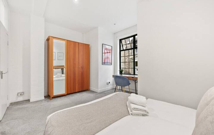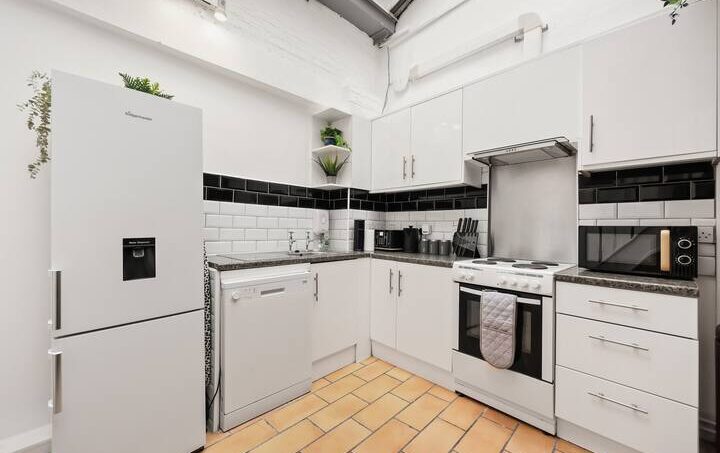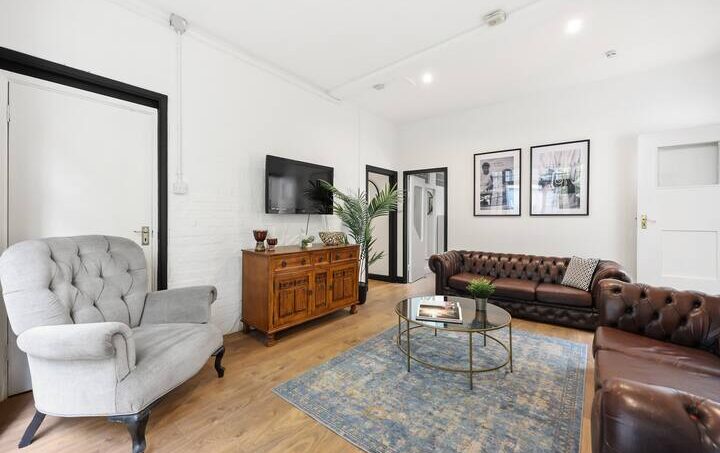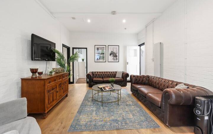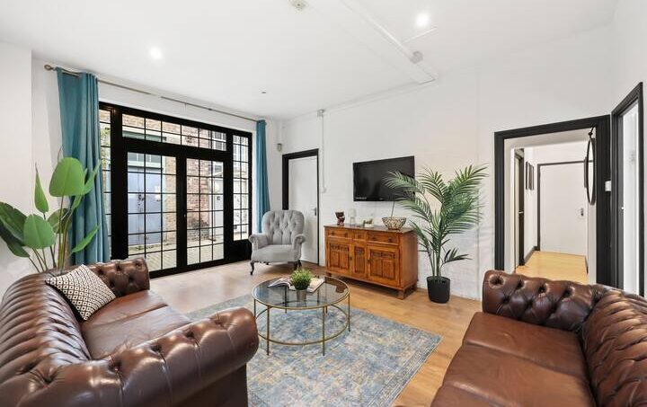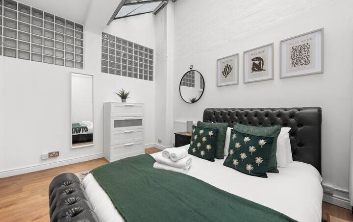 This 3-bedroom apartment is a beautifully converted warehouse. With a charming rustic feel, this spacious home offers three generously sized bedrooms, each featuring a king-sized bed for maximum comfort.
