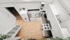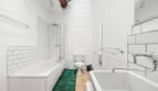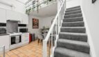 The apartment has two bathrooms: a modern shower room and a large full bathroom. The fully equipped kitchen provides everything you need for home cooking, while the mezzanine-style living area adds a touch of character and plenty of space to relax or entertain.