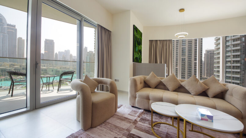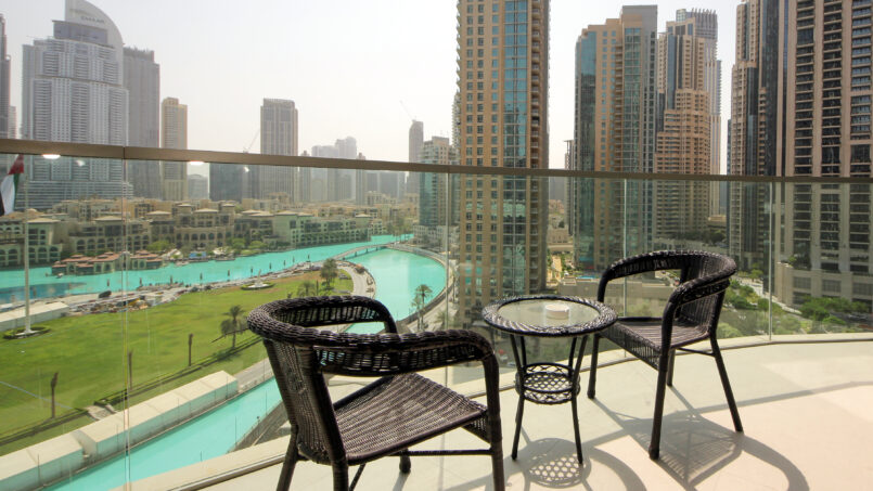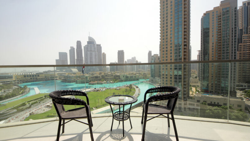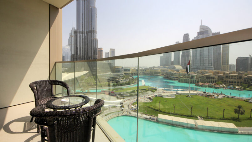 •⁠ ⁠A private balcony to unwind and soak in the unbeatable views of the Burj Khalifa and Dubai Fountain.