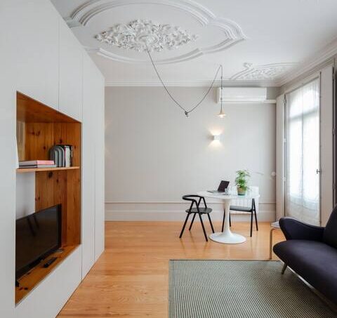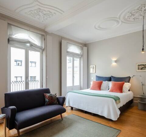Lovely studio with a huge balcony overlooking Rua da Boavista. A fine place to call home as it offers elegant and modern functionality combined with the traditional architecture typical from the bourgeois houses of the XIX century.