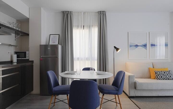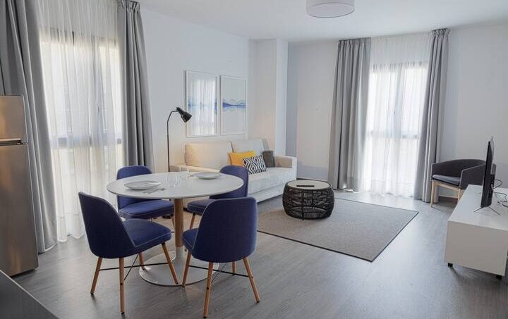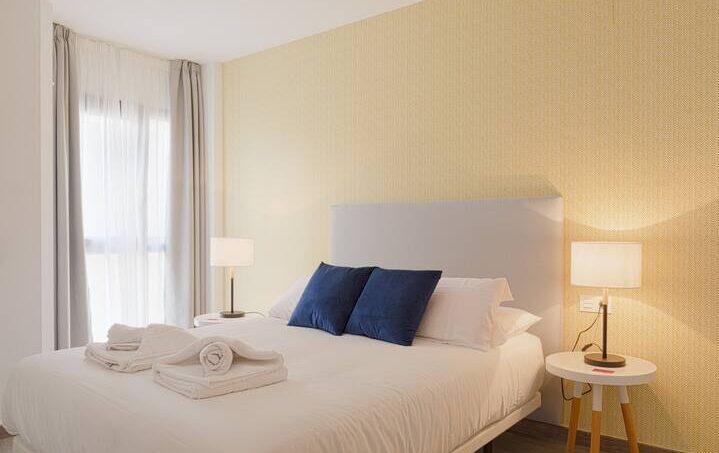 This carefully designed apartment has a fully equipped kitchen and a luminous and cosy living room. It has a common terrace available on the roof of the building, air conditioning, heating, Internet (WiFi), Smart TV, paid Parking (19,00€/noche) and all the necessary appliances.