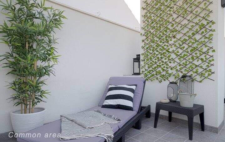 This carefully designed apartment has a fully equipped kitchen and a luminous and cosy living room. It has a common terrace available on the roof of the building, air conditioning, heating, Internet (WiFi), Smart TV, paid Parking (21,00€/noche) and all the necessary appliances.