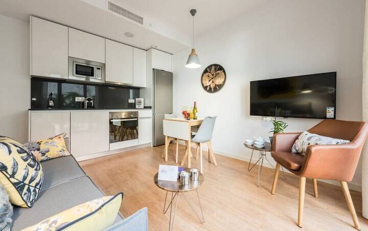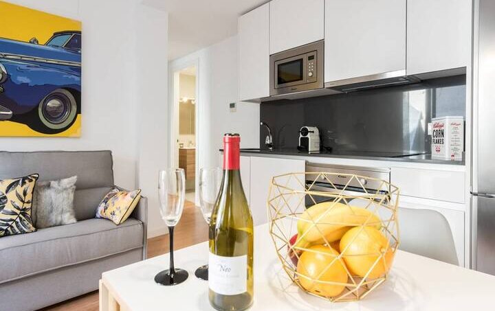 Bien comunicado con metro y gran variedad de cafés, restaurantes y tiendas.