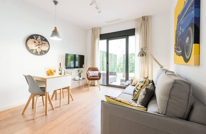 Apartamento de reciente construcción, con jardín- terraza, luminoso y acogedor. Situado en Moncloa/Arguelles cerca del centro histórico, universidad y en un barrio muy comercial.