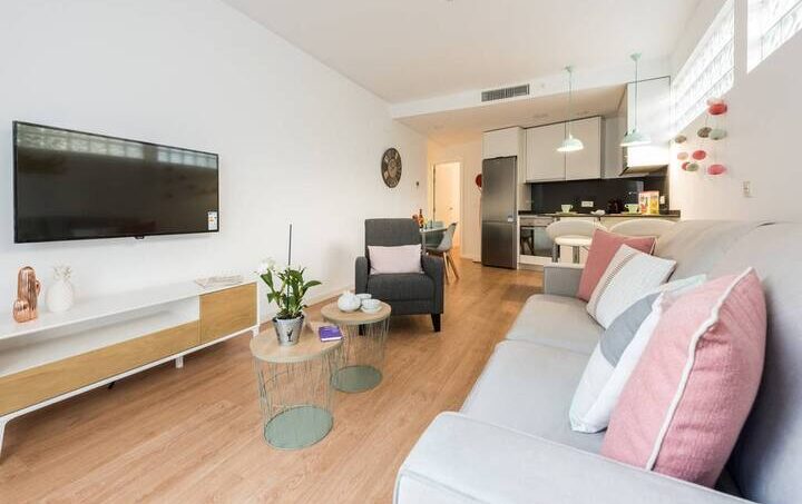 Muy bien comunicado con metro y gran variedad de cafés, restaurantes y tiendas.