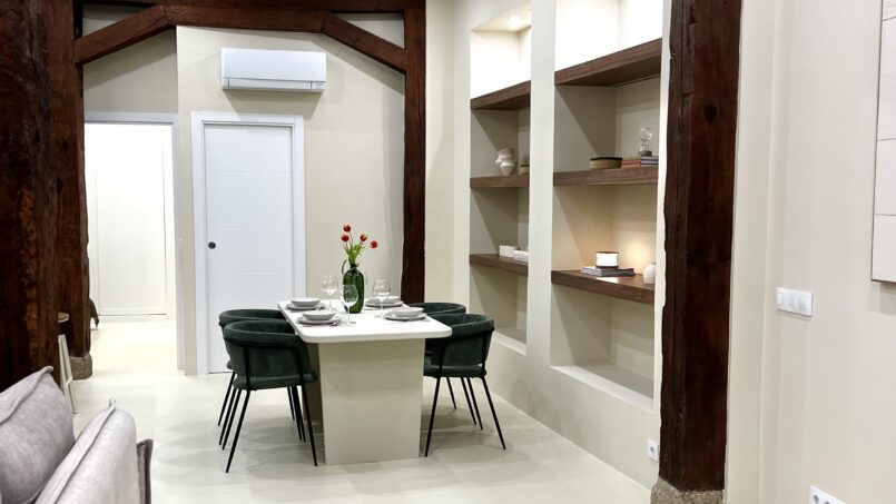 El salón cuenta con una gran Smart TV, sofá cama con un colchón de gran calidad 140cm, otro cuarto de baño WIFI de alta velocidad, aire acondicionado y una amplia mesa. Encontrarás una cocina a la que no le falta detalle y que cuenta con todos los electrodomésticos; lavavajillas, lavadora, microondas, horno, cafetera… Comodidad, calidad y ubicación definen nuestro apartamento.
