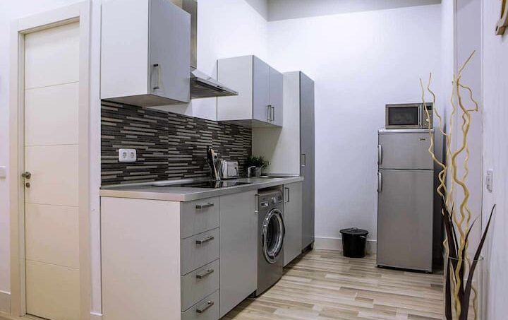 Cocina equipada con electrodomésticos nuevos (frigorífico, lavadora, microondas, vitro-cerámica, …) y todo el menaje y utensilios de cocina necesarios. La vivienda dispone de calefacción, aire acondicionado (AC) y WIFI gratuito.