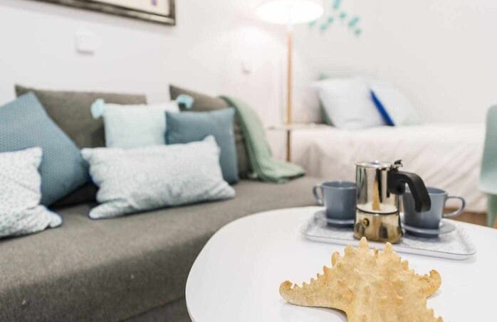 Es un estudio de 30 m2 reformado. Tiene una cocina amplia y equipada, y un baño con ducha. Tiene dos zonas, la de cocina- omedor y la de estar-dormitorio. Tiene una cama de matrimonio, un armario y un cómodo sofá cama para dos personas.