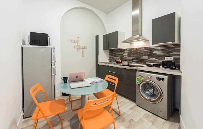 Cocina equipada con electrodomésticos nuevos (frigorífico, lavadora, microondas, vitro-cerámica, …) y todo el menaje y utensilios de cocina necesarios. La vivienda dispone de calefacción, aire acondicionado (AC) y WIFI gratuito.