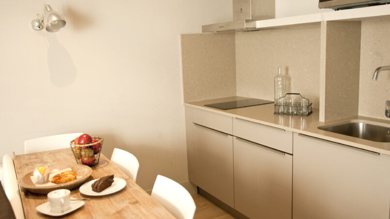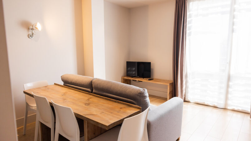 Modern and comfortable 1-bedroom apartment equipped with a double or two single beds and a sofa-bed in the living/dining area. It also includes a complete bathroom with shower and hairdryer, American-style kitchen with fridge, glass-ceramic hob and microwave; flat screen TV, telephone, air-conditioning and free Wi-Fi.