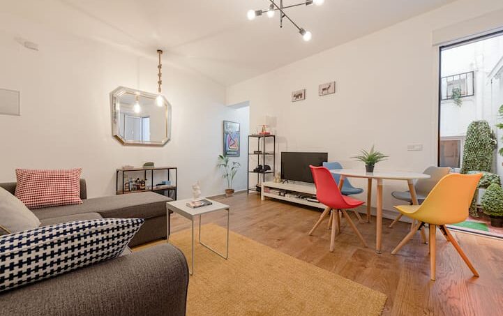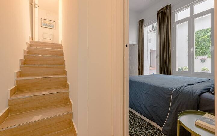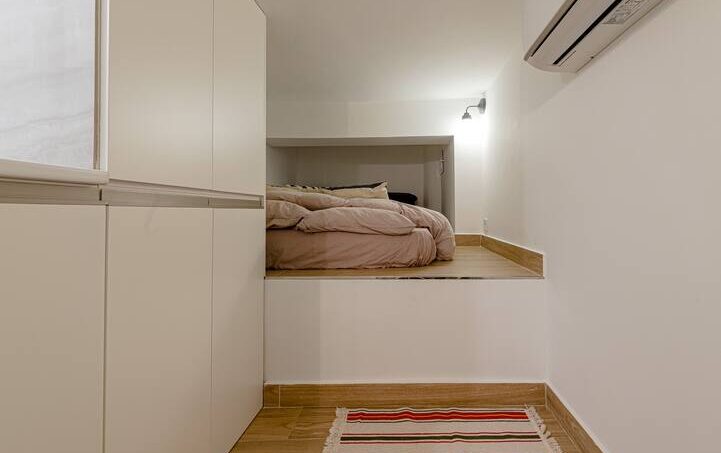 Beautiful apartment in the center of Madrid with a unique design that will make you feel at home but with all the comforts of the best hotels. The property has two bedrooms, one with a double bed, TV, and views to the beautiful courtyard of the property, the second has a cozy space with a low double bed as it is located in height. Also, you will find a comfortable and ample space in the living room to enjoy placidly the best moments with a dining room with four seats to take your snacks from this cozy place, a comfortable sofa, and open design kitchen fully equipped with all the utensils you need to prepare your favorite recipes. The property also has two bathrooms with a shower