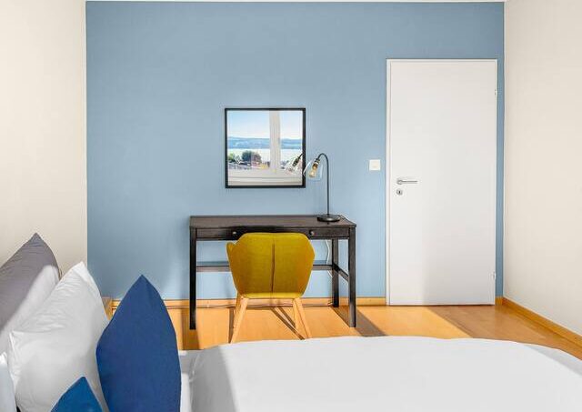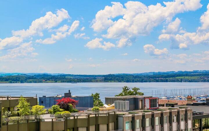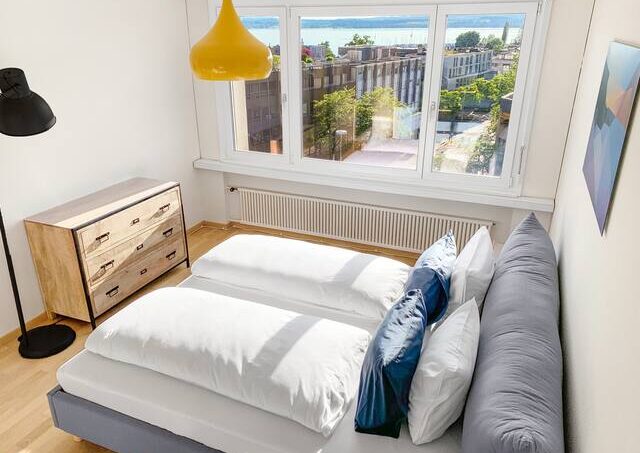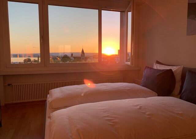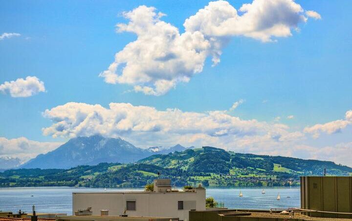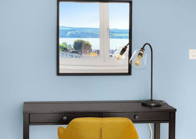 From the living room and the bedroom you can enjoy a wonderful panoramic view of the lake, the mountains and the city of Zug. Thanks to fiber-optic internet, you have the fastest internet connection in the region.