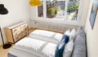 The bedroom is equipped with a 1.8m x 2m double bed. A large cushion back extends over the entire width of the bed.