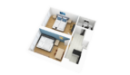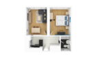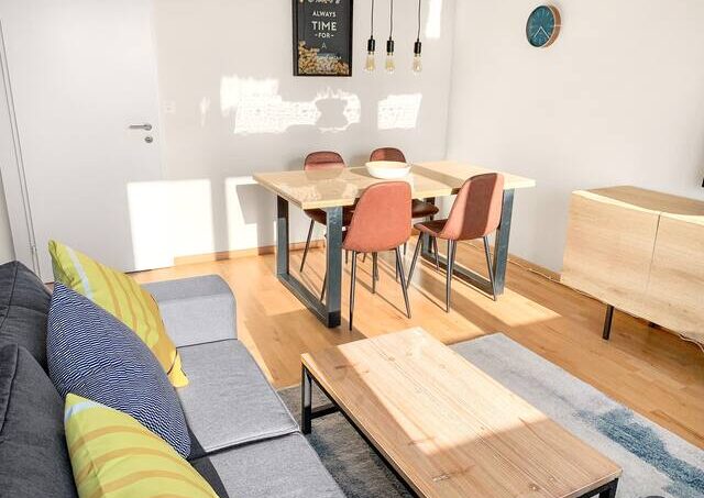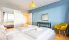 The 2 bedroom apartment is characterized by a modern, industrial and wooden design and a very cozy atmosphere.