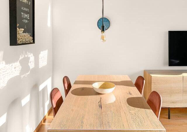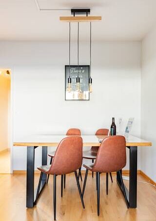The rustic, modern dining table for 4 people is suitable for both dining and working.