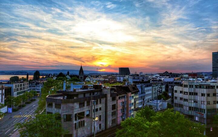 With a good book or a glass of wine you can enjoy breathtaking sunsets over the Zug countryside.