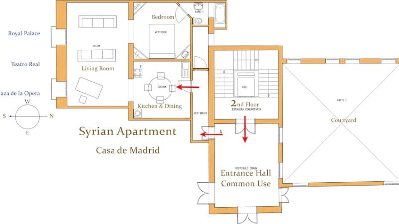 A high class one bedroom apartment with capacity up to 6 persons, with a large living room with two balconies looking onto the Opera Square, the Teatro Real and the Palacio Real. The Syria Suite has also an elegant first room with a small kitchen and eating space.