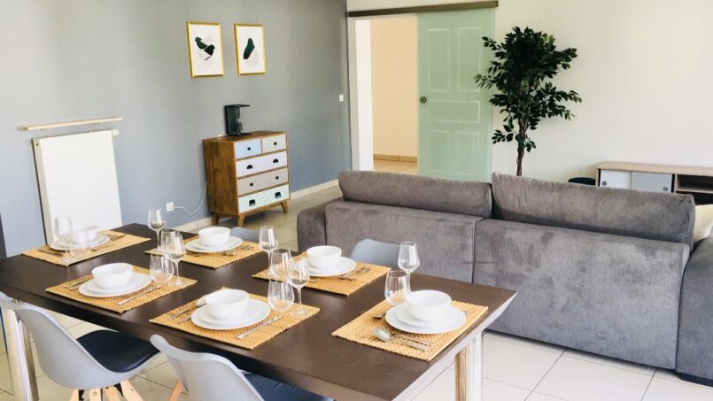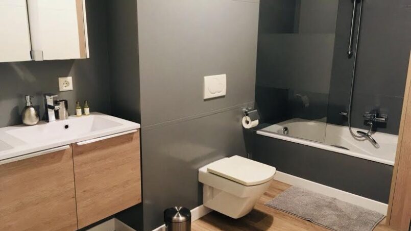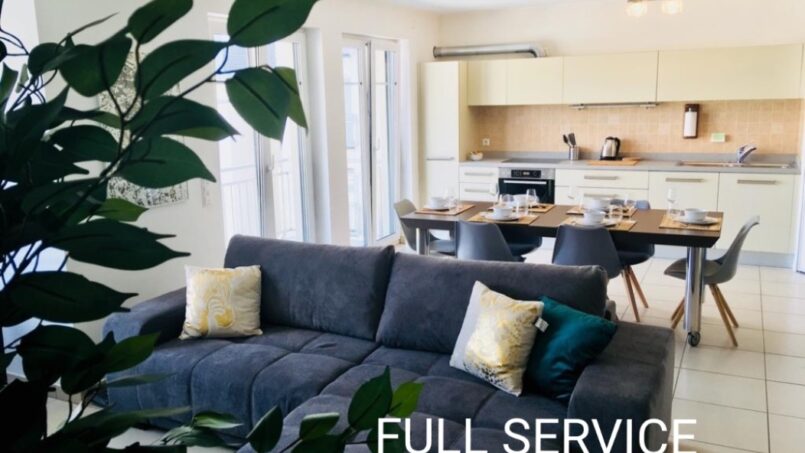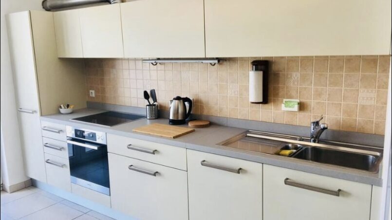 The apartment includes 2 big bedrooms, 1,5 bathrooms, a fully new equipped kitchen, a dining part, a large living room, a large terrace.