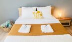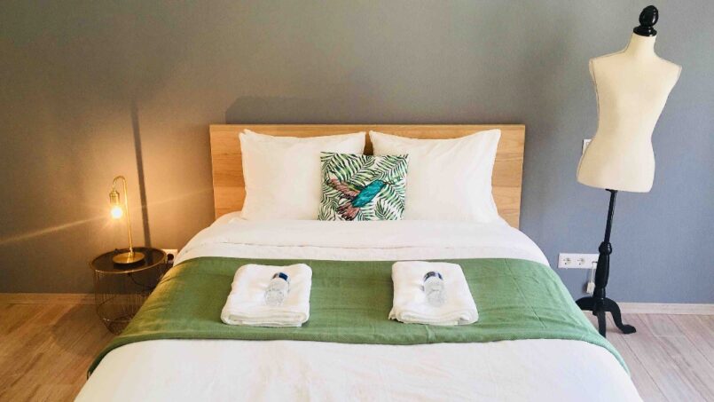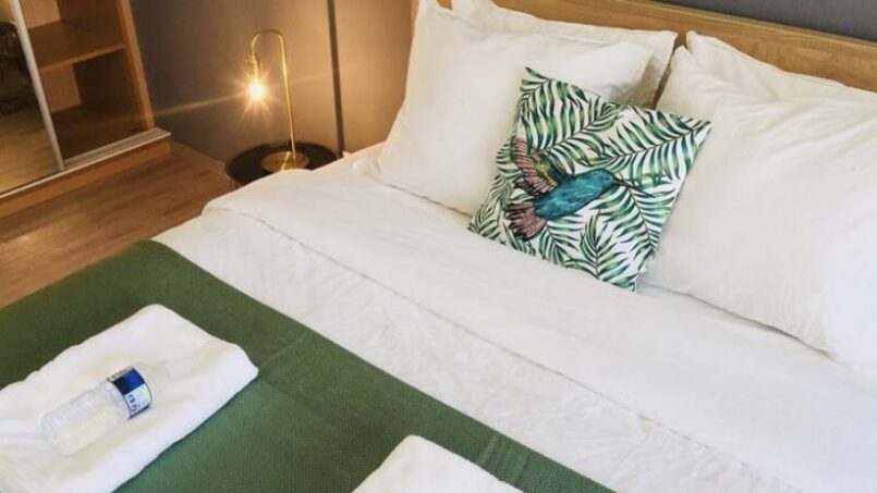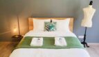 The 2 bedrooms have each a very comfortable double bed, a wardrobe, a bedside table and lamp. 1 bedroom has a desk to work.