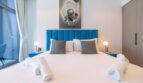 Our modern apartment is located in 15 Northside, a trendy new building in the heart of Business Bay. Enjoy stunning canal views and an unbeatable view of the Burj Khalifa from the comfort of your living room. The apartment is tastefully decorated with lots of blue accents, creating a natural, relaxing ambiance. Our building offers a wide range of amenities, including indoor gym on 2 floors, outdoor gym and pool with a stunning view of Downtown Dubai skyline.