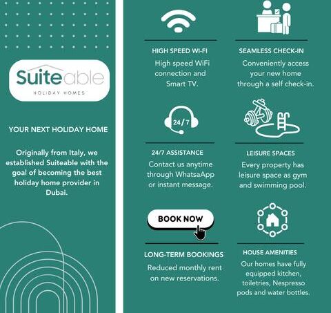 Business Bay is a bustling neighborhood in Dubai that offers something for everyone. Guests can take a stroll along the scenic Business Bay Canal, which offers picturesque views of the city skyline and plenty of photo opportunities. They can also visit some of Dubai’s top attractions, such as the Dubai Mall and the Burj Khalifa, which are just a short drive away or 15 minutes walk. The neighborhood is known for its diverse dining scene, with plenty of options ranging from high-end restaurants to casual cafes. For those looking to unwind, there are plenty of spas, salons, and fitness centers in the area. Overall, Business Bay offers a perfect blend of work and play, making it an ideal destination for both business and leisure travelers.