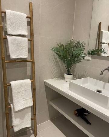 We have 2 bedrooms, 1 bathroom with walk in shower and double sink. Separate toilet. Fully equipped kitchen and large living and dining area.