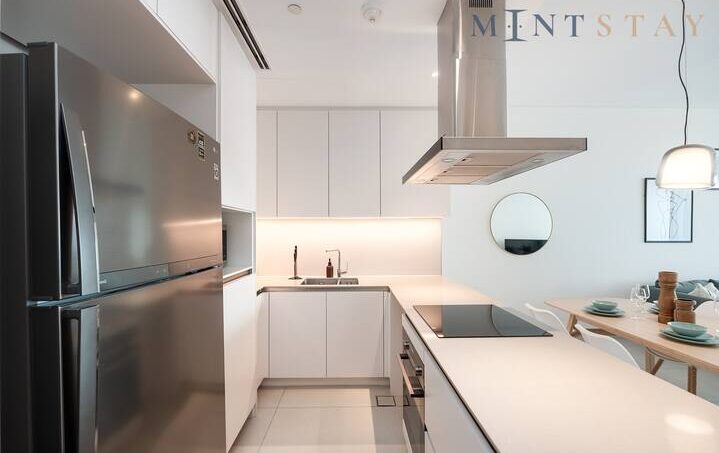 I mean, who needs to go out when you’ve got everything right here? The decor nails it, especially with those expansive windows giving you breathtaking beach view and Ain Dubai in sight. You’ve got choices too—relax on the couch and binge-watch Netflix or savour the view from your balcony. And if takeout loses its charm, head to the fully-equipped kitchen stocked with all essentials: stove, oven, microwave—you name it. There’s even a Nespresso machine for that caffeine fix! After indulging at the sleek modern dining table, simply load everything into the dishwasher. Plus, there’s a washing machine for your laundry needs and lightning-fast Wi-Fi to stay connected with your loved ones.