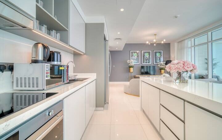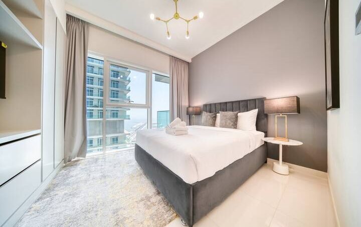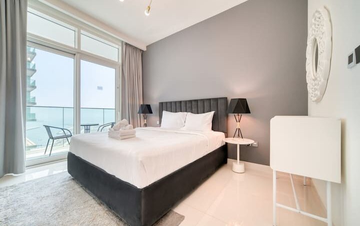 From the expansive living area to the exclusive balcony, you’ll be treated to breathtaking vistas of a pristine 1.5km beach, adorned by the turquoise sea and the captivating Dubai Marina. As our esteemed guest, you’ll have the pleasure of immersing yourself in unparalleled luxury. Delight in the array of lavish amenities, including an infinity pool and a state-of-the-art gym, ensuring that every moment of your stay is nothing short of extraordinary.