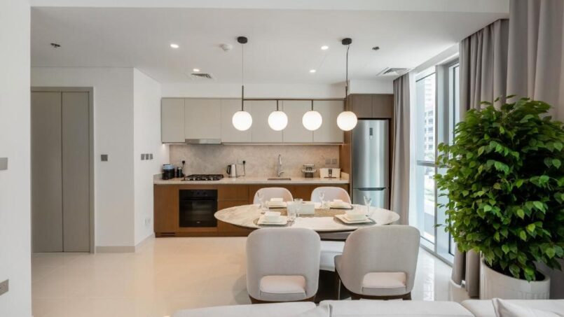 Unwind in this chic retreat that offers modern comfort just steps away from the sandy shores of Emaar Beachfront. Enjoy the refreshing sea breeze and catch fleetingglimpses of the shimmering ocean in this meticulously designed space with high-endfurniture. Elevate your experience with exclusive amenities such as the breathtaking
